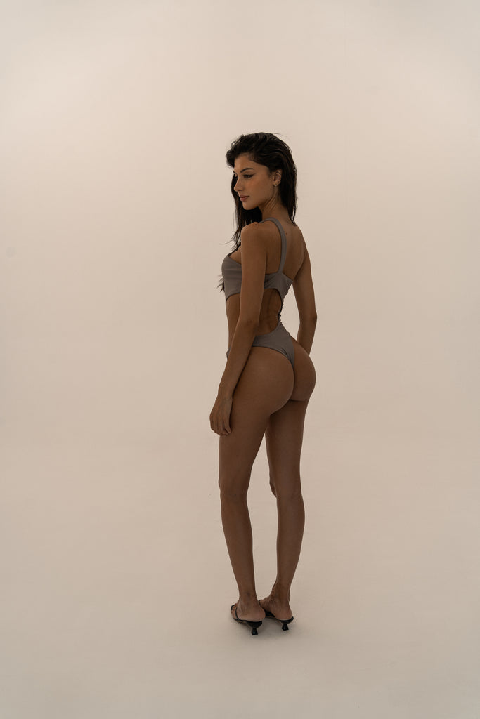 Effortlessly chic, the Amelie Swimsuit embodies luxurious design with a modern edge. Crafted with double-layered fabric and accented by a sleek silver steel ring that resists rust and tarnishing, this piece exudes sophistication. The cheeky thong-style bottom enhances your silhouette, while the elasticated fabric provides a seamless, figure-hugging fit. Perfect for making a statement, the Amelie Swimsuit combines timeless elegance with bold allure.